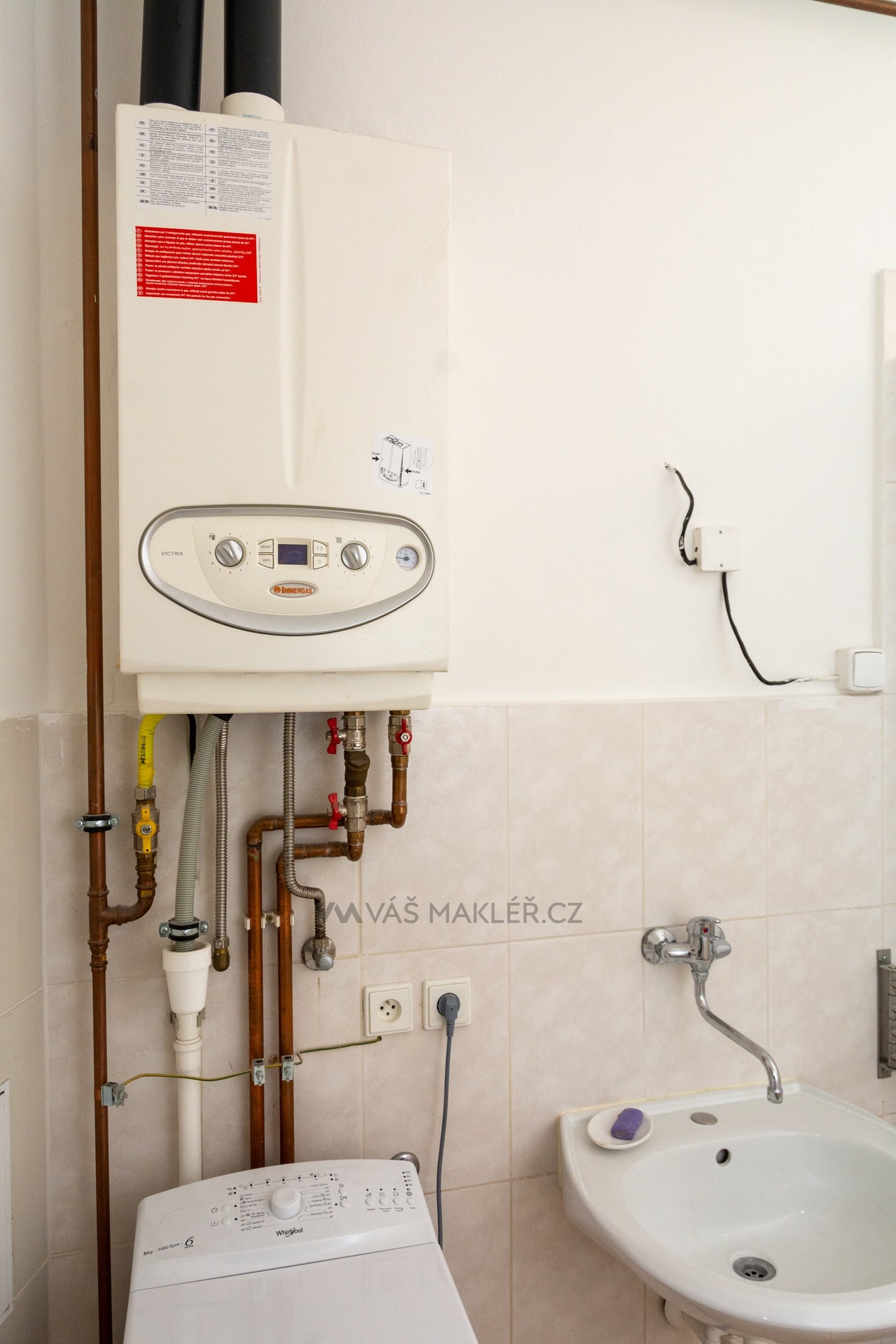 V kuchyni je IKEA linka zařízena indukčním sporákem, myčkou, digestoří, el. troubou a lednicí s mrazákem. V koupelně je pračka, sprchový kout, umyvadlo se zrcadlem a plynový kotel.