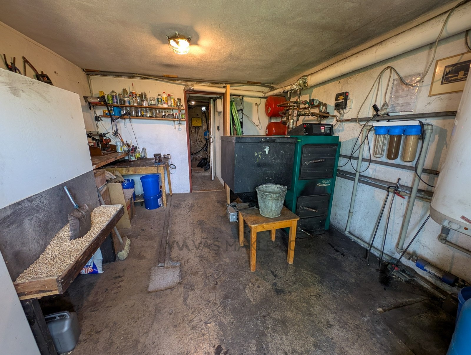 jako technické zázemí a úložný prostor (kotelna s kotlem na pelety, elektrickým kotlem, sklep,