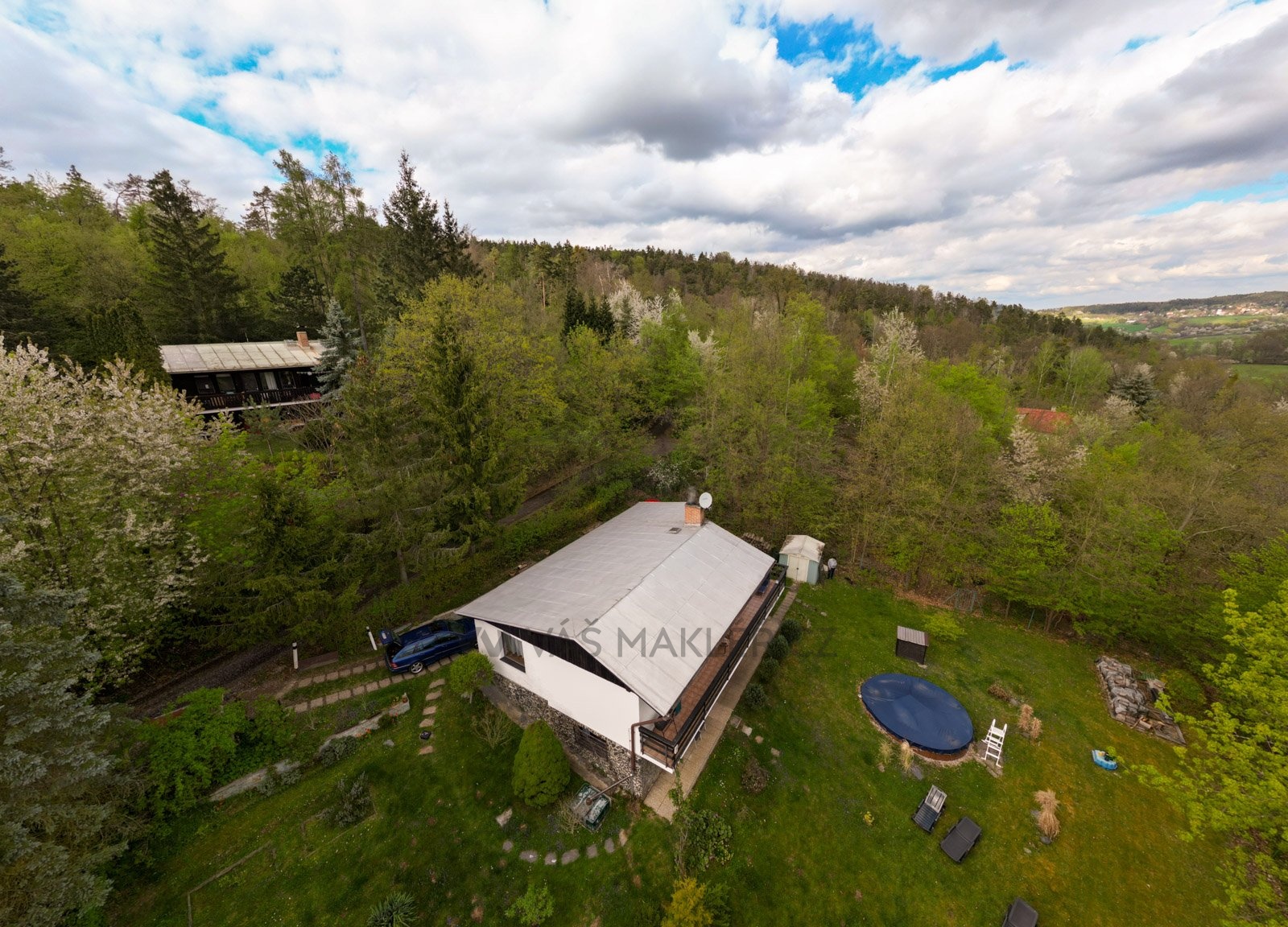 pozemku o rozloze 1.309 m2. RD se nachází v klidné lokalitě, v lese u Slap. Kvalitní cihlová